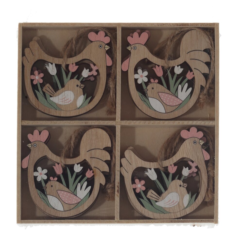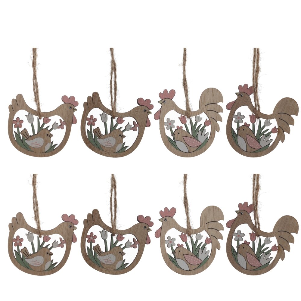 Набор из 8-ми изделий декоративных подвесных "Курица/Петух" (6*05*6), L12,5 W12,5 H1,5 см
