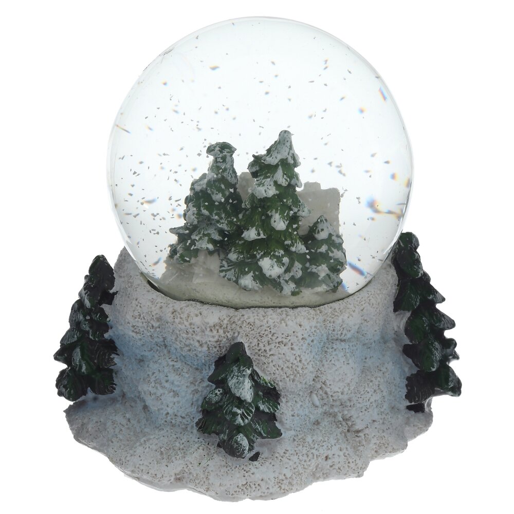 Фигурка декоративная в стеклянном шаре, диаметром 6,5 см. Шар заполнен водой с глиттером, имитурующем снег при встряхивании, фигурка и подставка изготовлены из полимерных материалов. Представлена в 3-х вариантах. Внимание: при длительном нахождении в минусовой температуре возможно образование льда, который сместит фигурки и повредит шар. Наличие воздушной прослойки внутри водяного шара является технической необходимостью производства.