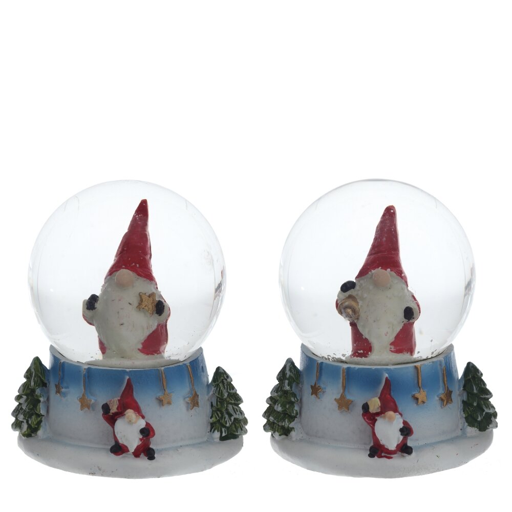 Новогодний снежный шар с фигуркой Гнома внутри подарит вам праздничное настроение и радость. Стеклянный шар, диаметром 4,5 см, заполнен водой с мелкими белыми хлопьями, имитурующими вьюгу при встряхивании. Фигурки и подставка изготовлены из полистоуна. Внутри фигурка лесного гнома в красном колпаке. Изделие станет прекрасным подарком для родных и близких. Представлено в двух вариантах. Внимание: при длительном нахождении в минусовой температуре возможно образование льда, который сместит фигурки и повредит шар. Наличие воздушной прослойки внутри водяного шара является технической необходимостью производства.