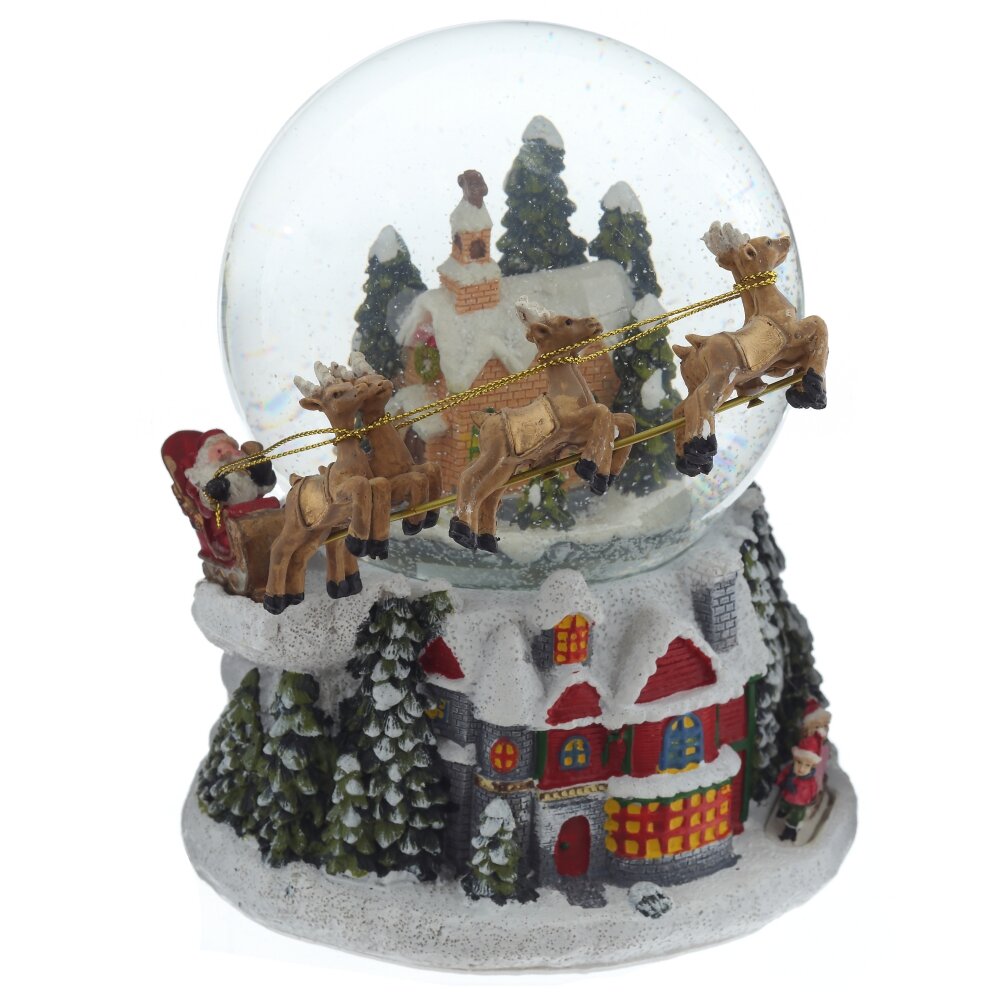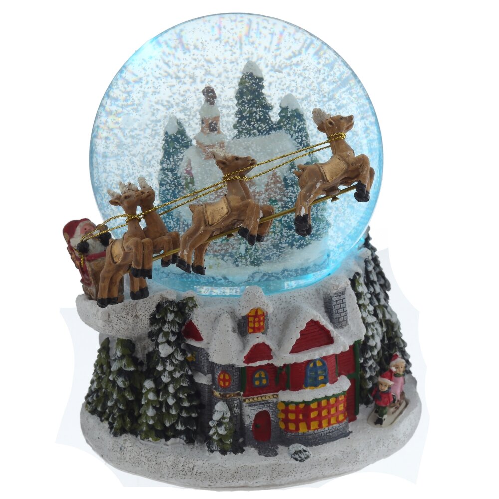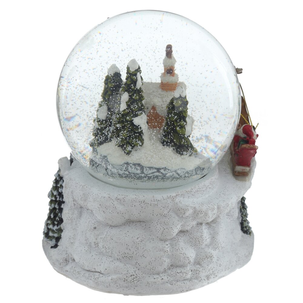 Фигурка декор в стекл шаре "Дом и Дед Мороз", (подсвет,муз, вьюга 3хАА н/п), D 11 см, L16 W16 H16 см