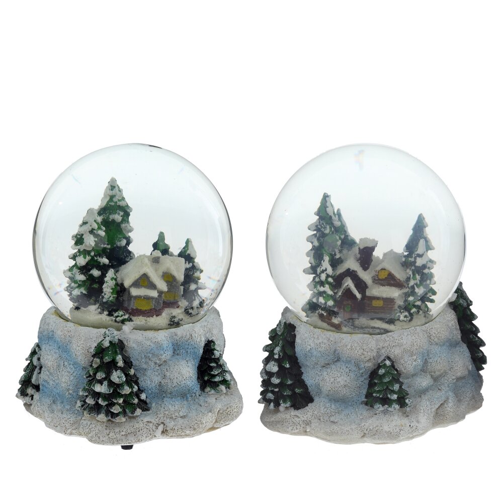 Фигурка декор в стекл шаре "Домик" (муз с ключ), D 10 см, L12 W12 H14,5 см, 2в.